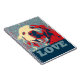 Dieses Notizbuch kennzeichnet eine Nahaufnahme eines lächelnden Hundes des goldenen Retrievers, getan in der "Hoffnungs" Schabloneart mit den roten, weißen und blauen Farben, zusammen mit der Wort-Liebe.