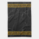 16" x 24" schwarze Küchentücher mit einem Bild von schwarzem Marmor und schwarz-metallische goldfarbene griechische Schlüsselbänder. Entsprechende Stoffserviette, Papiercocktail-Serviette, Tuch-Tischset, Papier-Tischset und Untersetzer. Sehen Sie sich die gesamte Toga Kitchen Handtuchsammlung im NAHRUNGSMITTEL/BEV an.| Linenabschnitt.