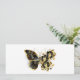 Goldener Schmetterling mit schwarzem Schmuckorchid, mit goldenen Blätter auf weißem Hintergrund dekoriert.
