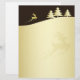 Elegante goldene Weihnachtsbilderung mit goldener Silhouette eines Rentiers und Baumes mit fröhlichem Weihnachtsgrüßen auf braunem Hintergrund.