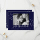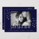 Diese elegante Hochzeitskarte Save the Date mit modernen, silbernen Schriftzeichen und Akzenten mit Ihrem bevorzugten persönlichen Foto auf einem dunkelblauen Hintergrund.
