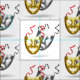 Grafik griechischer Theatermasken mit Comedy (goldfarben) und Tragödie (silberfarben) | nicht geeignet für dunklen Hintergrund