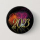 Das wertvolle Neujahr mit typografischem elegantem 3D-Goldbrief/Nummer 2023 mit einem farbenfrohen funkelnden Feuerwerk auf schwarzem Hintergrund.
