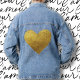 Gold Herz Symbol der Liebe Blue Denim Jean Jacket. Siehe Matching T - Shirt.