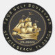 Goldenes Segelschiff auf schwarzer Rücksendeadress Runder Aufkleber