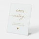 Goldenes Skript Open Seating-Zeichen, Ihren Platz Sockelschild