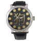 Goldenes Hundesymbol mit geprägtem digitalen Effekt in der Mitte eines schwarzen Rahmens mit ausgehöhlten Kreisen, die den goldenen Hintergrund für Stunden auf der Uhr anzeigen. Sie können die Hintergrundfarbe leicht ändern, indem Sie auf die Schaltfläche Anpassen klicken. Matching Schlüsselanhänger, Button, Grußkarte und mehr... Ideal für Chinesisch Neujahr des Hundes 2018 oder Geburtstag (Menschen geboren im Jahr des Hundes). — "Der Hund (狗) ist einer der 12-jährigen Zyklen von Tieren, die im chinesischen Zodiakum im Zusammenhang mit dem chinesischen Kalender erscheinen. Das Jahr des Hundes wird mit dem Symbol für die irdische Zweigniederlassung 戌. Der 狗 bezieht sich auf das eigentliche Tier, während 戌 auf das zodiakische Tier verweist. (..) Personen, die innerhalb dieser Zeitbereiche geboren sind, können als im "Jahr des Hundes" geboren bezeichnet werden, wobei sie auch das folgende Elementarzeichen tragen: 14. Februar 1934 - 3. Februar 1935 = Holzhund, 2. Februar 1946 - 21. Januar 1947 = Feuerhund, 18. Februar 195 Februar 1970 - 26. Januar 1971 = Metallhund, 25. Januar 1982 - 12. Februar 1983 = Wasserhund, 10. Februar 1994 - 30. Januar 1995 = Wood Dog 29. Januar 2006 - 17. Februar 2007 = Feuerhund, 16. Februar 2018 - 4. Februar 2019 = Erdhund, 2. Februar 2030 - 22. Januar 2031 = Metallhund, 22. Januar 2042 - 9. 43 = Water Dog - " Wikipedia