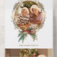 Festige Fotokarte mit elegant gezeichnet goldfarbenem Weihnachtskranz mit Aquarellbogen und Kiefer und individueller Happy Holidays Textgrafik. Die Panels verfügen über bearbeitbare Textfelder und Bildvorlagen.