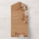 Gold | Herbstlaube Hochzeit in einer Einladung. Dieses elegante All-in-One-Hochzeitsangebot besticht durch handbemalte Aquarellfarben in Orange, Kupfer und Terrakotta-Blätter, cremefarbene und beige Dahlien sowie wunderschöne rostfarbene Rose auf goldfarbenem Hintergrund. UAWG ist in dieser stilvollen Einladung enthalten. Finden Sie passende Artikel in der Gold Herbst Romance Kollektion.