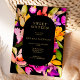 Fett Fall überdimensionales florales Aquarell Foto Sweet 16 Geburtstagseinladung mit rosa, lila, gelb, grüne Farben und fett abstrakte Blume und eine geometrisch abgerundete Rechteck Form, in Gold und Schwarz, fügen Sie Ihr Foto auf der Rückseite.