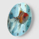 Foto eines orangen Goldfish im Perlmaßstab mit blauem Hintergrund, gedruckt auf einer Wall-Uhr.