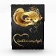 Schwarzer Hintergrund mit goldenem Herz, Text und Goldfisch für Sie, um Ihre Bedürfnisse zu personalisieren. Sparen Sie in jedem Gewehr!