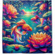 Dieses lebendige Design besticht durch zwei Goldfische, die in einer ruhigen Unterwasserszene zwischen Lotus-Blume anmutig schwimmen. Die Goldfische sind in Orange- und Goldtönen dargestellt und kontrastieren wunderschön mit den Blume Rosa und Weiß Lotus. Der Hintergrund zeigt eine ruhige Wasserszene mit dem Sonnenuntergang oder dem Aufstieg am Horizont und schafft so eine atemberaubende Reflexion auf der blauen, grünen Wasseroberfläche. Blasen schweben herum, verstärken das Unterwasserambiente und sorgen für mehr Ruhe. Dieses Kunstwerk vereint die Eleganz der Blume Goldfisch und Lotus und ist somit eine perfekte Ergänzung zu einer naturgetreuen Dekoration. Die faszinierenden Details und die lebhaften Farbtöne schaffen eine optisch ansprechende und harmonische Komposition, die sich ideal eignet, um jedem Raum eine Touch von natürlicher Schönheit hinzuzufügen.
