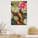 Goldfish in einem Teich mit Wasserlilien Dieser Goldfisch oder Koi Schwimmen in einem Seerosenteich ist ein klassischer Blick auf ein universell schönes Thema. Das Bild wird von der florida Künstlerin Mary Hubley gemacht. Goldfisch oder Koi schwimmen unter mehreren Lilienpolstern. Eine schöne Ergänzung zu jedem Dekor der Zuhause, ein Lilienteich mit rosa Seerosen, ist etwas, das die klassischen Impressionisten geschaffen haben, besonders Claude Monet, als er in Frankreich viele Lilienteiche-Bilder kreierte. Der Lilienteich, die rosa Seerosen und der Koi sind wunderschöne Orte. Friedliche Koi, wunderschöne Lilienpads und ruhige Lilienlilie-Blume sind perfekt!