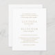 Elegante Imitate vergolden alles in einer preiswerten Hochzeitseinladung mit einem einfachen und minimalen Design mit den Namen der Braut und Bräutigam in einem klassischen Serif-Schriftart und die Mittel- und Nachnamen in einem eleganten Kalligraphieskript. Auf der Rückseite befinden sich Ihre Gastdetails sowie ein optionaler QR-Code. Wenn Sie es vorziehen, können Sie den QR-Code im Entwurfstool entfernen. Ein klassischer Stil, der perfekt für eine formelle Hochzeit ist.