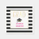 Gold grad schwarz, weiße Streifen heißen rosa Abschluss Papierserviette. Das Wort "GRAD: in Gold, Schwarz und Weiß horizontale Streifen und Ihr Text in fuchsienrosa schmücken dieses Papier Serviette.