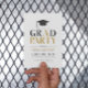 Grad Party elegantes Retro-Typografie-Design in Grau und Gold auf einem weißen Hintergrund. Einfache typografisch-basierte Graduierungsparty Einladung.