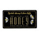 Goldtext mit "Fensterscheibe" Bienen, "Honig" geschrieben in dekorativem Schriftart. Gold gepunktete Grenze auf schwarzen 2,375" L x 1,25" H (18 Etiketten pro Blatt) oder 3,75" L x 2" H-Etikett (8 Etiketten pro Blatt)