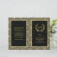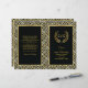 Schwarzer, goldgriechischer Schlüssel und Lorbeerkranz gefaltete Hochzeitsfeier und Party-Programm mit Initialen mit einem Lorbeerkranz und einer Grenze mit griechischem Schlüssel oder Meander oder griechischem Brustmuster Rand in Gold und Schwarz. Dieses elegante, Vintage Design der antiken Welt ist perfekt für griechische und/oder griechische Hochzeitsthemen, egal wo sie in Griechenland oder anderswo stattfinden. Es ist ein vollständig anpassbarer Template Teil eines Hochzeitsvortrags Set. Es kann auch in griechischer oder zweisprachiger Sprache erfolgen. Man muss es in der Mitte falten. Wählen Sie nur diesen Papierwert aus, da er sich gut faltet.
