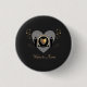 Knopf mit einem Design von zwei Bräuchen, stehend auf beiden Seiten eines goldenen Herzens. Dieser Artikel ist Teil eines Hochzeitsvortrags-Set, das eine Hochzeitseinladung, eine rsvp-Karte und vieles mehr beinhaltet. (Die Goldelemente im Set sind Imitat, Gold und nicht Goldfolie.)
