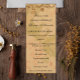 Es ist ein sehr dekoratives Hochzeitsprogramm mit einem goldenen und perlfarbenen Muster und hat einen eleganten, blumengeschmückten Shabby Chic-Look mit dem abgeblasenen Blütenmuster der Ernte von Gold und Ziermotiven, goldblühenden Mustern in (Imitaten) goldfarbenem Metall an der Spitze.