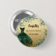 Für eine elegante Quinceañera, 15. Ein Imitat goldener Hintergrund. Dekoriert mit einem smaragdgrünen Kleid und grünen Konfetti. Personalisieren und fügen Sie einen Namen und ein Datum hinzu.