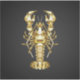 Golden, glänzend, Hummer, polygonal gezeichnet, geometrisch auf schwarzem Hintergrund. Goldlobster.