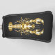 Golden, glänzend, Hummer, polygonal gezeichnet, geometrisch auf schwarzem Hintergrund. Goldlobster.