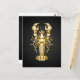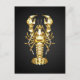Golden, glänzend, Hummer, polygonal gezeichnet, geometrisch auf schwarzem Hintergrund. Goldlobster.
