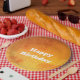 Marmoreffekt in Goldpapier-Tellern, Happy-Geburtstag-Thementext kann für jede besondere Veranstaltung personalisiert werden.