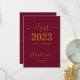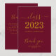 Feiern Sie stilvoll mit diesem schlichten und stilvollen Abschluss dank Ihrer Karte. Das Design bietet "Class of 2023" im goldenen Schriftart auf einem sauberen bordeauxfarbenen Hintergrund. Einfach anzupassen. Bestelle noch heute!