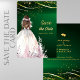Feiern Sie Ihre Liebe mit dieser eleganten Gold und Green African Bride Save the Date Card. Mit einem atemberaubenden Design mit einer strahlenden Brautgrafik, goldenen Akzenten und üppigen grünen Details ist diese Karte perfekt für Ihren besonderen Tag Set. Ideal für moderne Hochzeiten mit einem anspruchsvollen und zeitlosen Thema, ist es eine wunderschöne Möglichkeit, Ihren Gästen lassen, ihre Kalender. Personalisieren Sie es mit Ihren Hochzeitsdetails, um es einzigartig Ihrer zu machen!