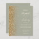 Die links Kulisse dieser modernen Hochzeitseinladung besticht durch einen vergoldeten Glitzer mit Imitaten. Der anpassbare Text kombiniert Elfenbeinhandschrift, Copperplate und kursiv Schriftart auf einem schlängelgrünen Hintergrund. Die Rückseite bietet Platz für Hochzeitsdetails auf einem soliden, grünen Hintergrund, zusammen mit einem QR-Code können Gäste scannen, um Ihre Website und UAWG.