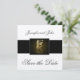 Schwarz, Elfenbein und Gold Monogram E Speichern Sie die Datumskarten Design von Elke Clarke ©. Passen Sie Ihre Hochzeitsinformationen an. Erschaffen Sie einen luxuriösen Look und ein regales Gefühl, um Ihren besonderen Tag zu verkünden.