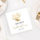 Diese elegante Brautparty-Serviette zeigt eine Vintage Abbildung der Meereskoralle in Imitaten goldenen Folie, über dem Begriff "Brautparty" in eleganten goldfarbenen Handschrift. Passen Sie die Erholung des Textes mit dem Namen der zukünftigen Braut und dem Duschdatum in schwarzem Sans Serif Schriftart an.