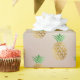Goldminzfrüchte der tropischen Ananas, rosa Geschenkpapier