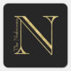 Goldmonogramm N und Name auf einer beliebigen Farb Quadratischer Aufkleber
