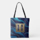 Blue Agate Marmor Gold Name und Monogram Tote Bag