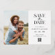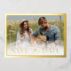 Goldrahmen Save the Date Einladung. Die elegante, stilvolle Hochzeitsankarte mit einem eleganten Rahmen und elegantem Kalligrafieschrift in Echtgoldfolie gepresst mit einem senkrechten Foto und einem horizontalen Foto sowie einem QR-Code für die Personalisierung. Unten befindet sich ein optionales Overlay für das weiße Foto, das Sie ganz einfach löschen können.