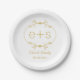 Goldrahmen und Initialen elegante monogramm Hochzeitspapierplatte mit Ihren Initialen in einem Goldrahmen mit Blätter auf Weiß. Dieses mit Monogramm elegante und individuell gestaltbare Hochzeitsgeschenk eignet sich perfekt für eine klassische Hochzeit. Dieses Design kann auch für andere Gelegenheiten verwendet werden, wie zum Beispiel Brautpartys, Verlobungen oder Jubiläen Empfang und Partys.