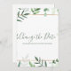 Mit dieser eleganten "Change the Date"-Karte können Sie Ihre Hochzeitsfeier mit Stil verkünden, die wunderschön mit frischen grünen botanischen Blätter und einer subtilen, bedruckten Goldgrenze geschmückt ist. Die ausgeklügelte Kalligraphie und das übersichtliche Layout machen sie perfekt für Sommer-, Frühjahr-, Herbst- oder Winterfeiern, während der großzügige Platz es Ihnen ermöglicht, Namen, neues Datum, Veranstaltungsort und wichtige Details in fett lesbarem Schriftart hinzuzufügen. Dieses moderne, natürliche Design eignet sich ideal für Paare, die ihren großen Tag verschieben oder verschieben, um Ihren Freunden und Ihrer Familie ein herzliches Willkommen und eine gute Information zu garantieren.