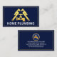 Die dunkelblaue Abdeckung wird durch einen rechteckigen Rahmen in Gold hervorgehoben. Oben ist ein Paar bezahlter Armbrüche und ein Wasserhahn, der ein Zuhause-Dach bildet. Ihr Firmenname "ZUHAUSE PLUMBING", den Sie ändern können, befindet sich in der Nähe der Kartenbasis. Overleaf wird das gleiche goldene Rechteck-Thema verwendet. Oben befindet sich das goldene Wasserhahn-Logo, das Sie verwenden können, gefolgt von Ihren angesehenen Kontaktinformationen und einer Slogan-Beschriftung. Eine großartige Karte für Klempner. #plumber #plumbing #plumbingandheat #plumbingtools #plumbingtragning service #faucet #pipe #pipefitter #waterpipe #handyman #zazzlemade