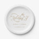 Einfache Goldplatte und weiße Hochzeitspapierplatte mit eleganter, romantischer Wirbler Kalligraphie-Schrift mit Ihren Namen. Für eine weiter gehende Anpassung dieses Designs klicken Sie bitte auf den BUTTON BLAU DESIGN TOOL oben!
