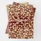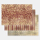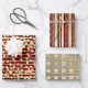 Ein Trio der Geschenkverpackung, jedes mit einem anderen Design, aber alles in Gold und eine tiefe Burgund Wein rote Farbe. Das erste Blatt weist dünne horizontale Linien auf, über die belebte Goldfische-Punkte erscheinen; Der zweite Streifen hat einen vertikalen, dicken und dünnen Streifen dazwischen, der ein zarter vertikaler Streifen mit Perlen ist und der dritte hat dünne horizontale Streifen, die durch mittelgroße Goldzirkeln in antiken Gold. Die Hintergrundfarbe kann in eine beliebige Farbe geändert werden.