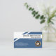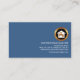 Auf der Rückseite, in einem dunkelblauen Cover, befindet sich das Logo der goldenen Zuhause-Klemme oben, gefolgt von Ihrem Prestigenamen, Kontaktdaten und einer Slogan-Beschriftung.