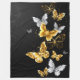 Gold, Schmuck und weiße Schmetterlinge auf schwarzem Hintergrund. Goldener Schmetterling