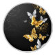 Gold, Schmuck und weiße Schmetterlinge auf schwarzem Hintergrund. Goldener Schmetterling