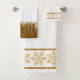 Goldschneeflocken auf weißem Glitzer Badhandtuch Set