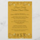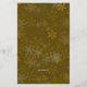 Weihnachtsmenü Vorlage gedruckt auf erschwinglichen, Flyer Papier. Oben und unten Rand von Goldschneeflocken und bedruckte dunkelgoldbraune Schrift. Erstellen Sie einen Titel mit Familienname, fügen Sie das Jahresdatum am unteren Ende ein, und listen Sie einfach die Menüwahl für ein spezielles Feiertagsfest an Weihnachten oder Weihnachten. Reverse hat das gleiche Schneeflocken-Design auf warmen goldbraunen.