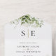 Diese schicke, blumengeschmückte Hochzeitseinladung kann mit Ihren Monogramm-Initialen und den Informationen zum Hochzeitstag personalisiert werden. Die Einladung enthält eine perforierte RSVP-Karte, die Ihren QR-Code für Ihre Hochzeitswebsite enthält. Entwickelt von Thisisnotme©